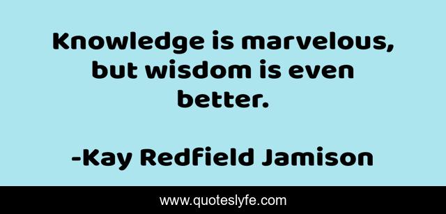 "Kay Redfield Jamison Quotes." Quoteslyfe.com, 2025. Sat. 06 Dec. 2025. <https://www.quoteslyfe.com/quote/Knowledge-is-marvelous-but-wisdom-is-even-12542>.