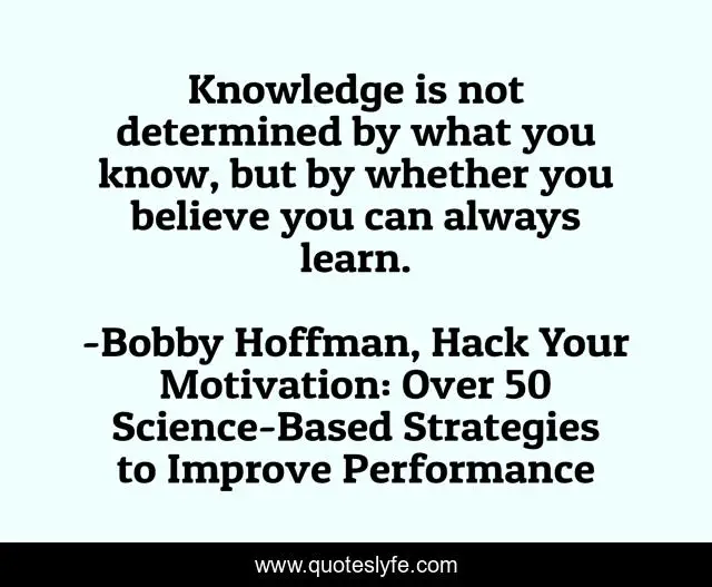 "Bobby Hoffman, Hack Your Motivation: Over 50 Science-Based Strategies to Improve Performance Quotes." Quoteslyfe.com, 2025. Fri. 05 Dec. 2025. <https://www.quoteslyfe.com/quote/Knowledge-is-not-determined-by-what-you-242530>.