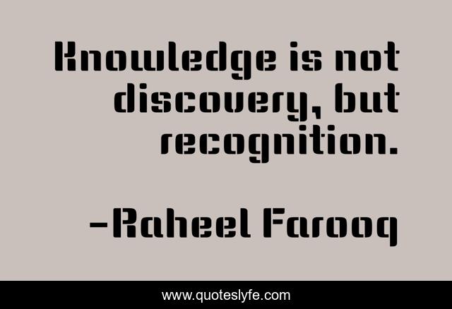 "Raheel Farooq Quotes." Quoteslyfe.com, 2025. Fri. 05 Dec. 2025. <https://www.quoteslyfe.com/quote/Knowledge-is-not-discovery-but-recognition-208953>.