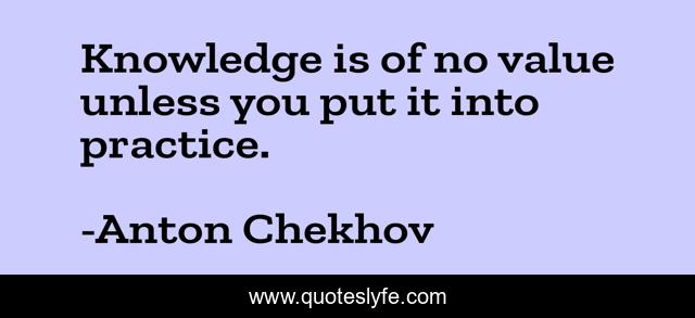 This page presents the quote "Knowledge is of no value unless you put it into practice.". Author of this quote is Anton Chekhov. This quote is about practice, value, wisdom,.