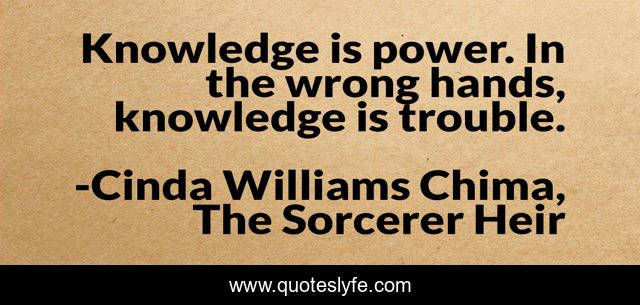 "Cinda Williams Chima, The Sorcerer Heir Quotes." Quoteslyfe.com, 2025. Fri. 05 Dec. 2025. <https://www.quoteslyfe.com/quote/Knowledge-is-power-In-the-wrong-hands-88782>.