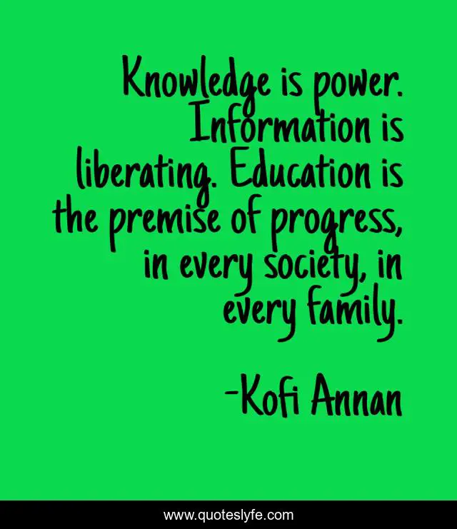 "Kofi Annan Quotes." Quoteslyfe.com, 2025. Sat. 06 Dec. 2025. <https://www.quoteslyfe.com/quote/Knowledge-is-power-Information-is-liberating-Education-298763>.