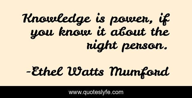 This page presents the quote "Knowledge is power, if you know it about the right person.". Author of this quote is Ethel Watts Mumford. This quote is about knowledge, right person,.