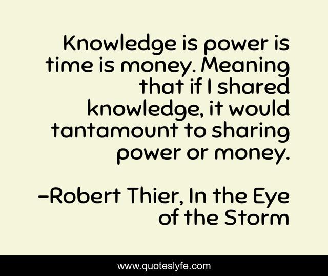 "Robert Thier, In the Eye of the Storm Quotes." Quoteslyfe.com, 2025. Sat. 06 Dec. 2025. <https://www.quoteslyfe.com/quote/Knowledge-is-power-is-time-is-money-240382>.