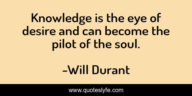 This page presents the quote "Knowledge is the eye of desire and can become the pilot of the soul.". Author of this quote is Will Durant. This quote is about desire, eye, soul,.
