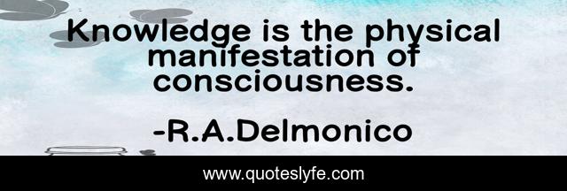 This page presents the quote "Knowledge is the physical manifestation of consciousness.". Author of this quote is R.A.Delmonico. .