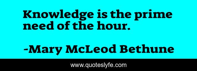 This page presents the quote "Knowledge is the prime need of the hour.". Author of this quote is Mary McLeod Bethune. .