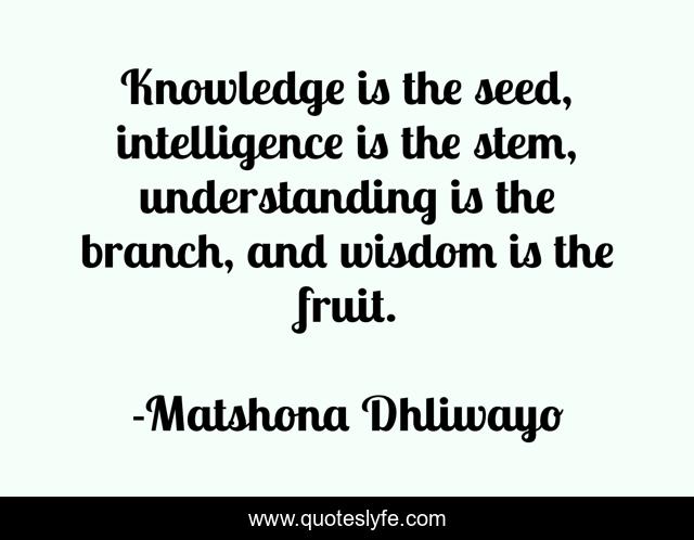 "Matshona Dhliwayo Quotes." Quoteslyfe.com, 2025. Sat. 06 Dec. 2025. <https://www.quoteslyfe.com/quote/Knowledge-is-the-seed-intelligence-is-the-98465>.