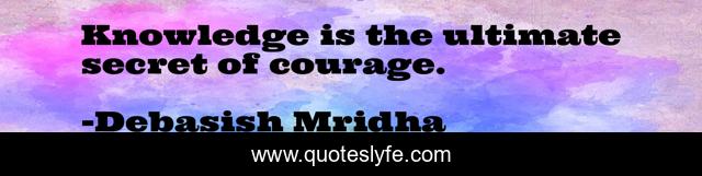 This page presents the quote "Knowledge is the ultimate secret of courage.". Author of this quote is Debasish Mridha. This quote is about knowledge, philosophy, debasish-mridha, secret-of-courage, quotes, inspirational, enthusiasm, debasish-mridha-m-d, power-of-knowledge,.