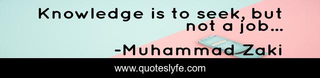 This page presents the quote "Knowledge is to seek, but not a job...". Author of this quote is Muhammad Zaki. This quote is about deep-thoughts, seek, knowledge,.