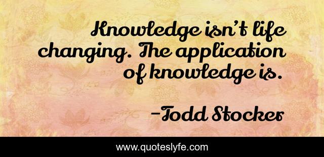 "Todd Stocker Quotes." Quoteslyfe.com, 2025. Fri. 05 Dec. 2025. <https://www.quoteslyfe.com/quote/Knowledge-isn-t-life-changing-The-application-84075>.