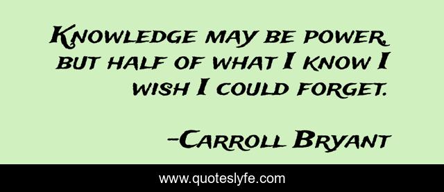 This page presents the quote "Knowledge may be power, but half of what I know I wish I could forget.". Author of this quote is Carroll Bryant. This quote is about humor, humorous, comedy-humor, philisophical, humorist, philisophical-life, comical,.