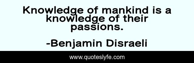 This page presents the quote "Knowledge of mankind is a knowledge of their passions.". Author of this quote is Benjamin Disraeli. .