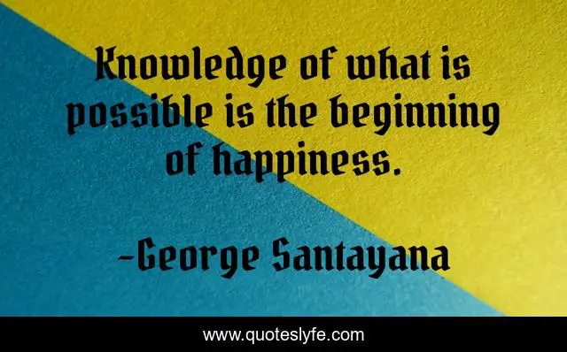 This page presents the quote "Knowledge of what is possible is the beginning of happiness.". Author of this quote is George Santayana. .