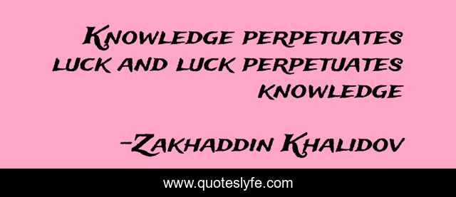 This page presents the quote "Knowledge perpetuates luck and luck perpetuates knowledge". Author of this quote is Zakhaddin Khalidov. This quote is about education, knowledge, luck,.