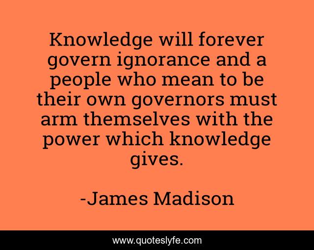 "James Madison Quotes." Quoteslyfe.com, 2025. Fri. 05 Dec. 2025. <https://www.quoteslyfe.com/quote/Knowledge-will-forever-govern-ignorance-and-a-298260>.