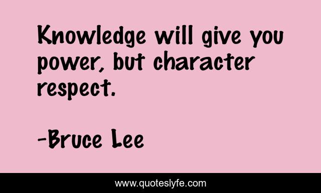 This page presents the quote "Knowledge will give you power, but character respect.". Author of this quote is Bruce Lee. .