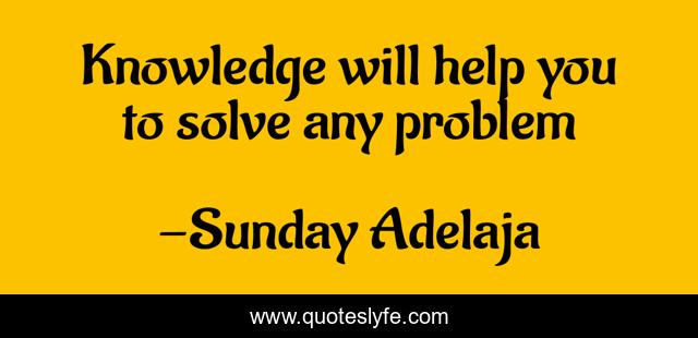This page presents the quote "Knowledge will help you to solve any problem". Author of this quote is Sunday Adelaja. This quote is about life, knowledge, mission, ignorance, purpose, problem, calling, solution, help,.