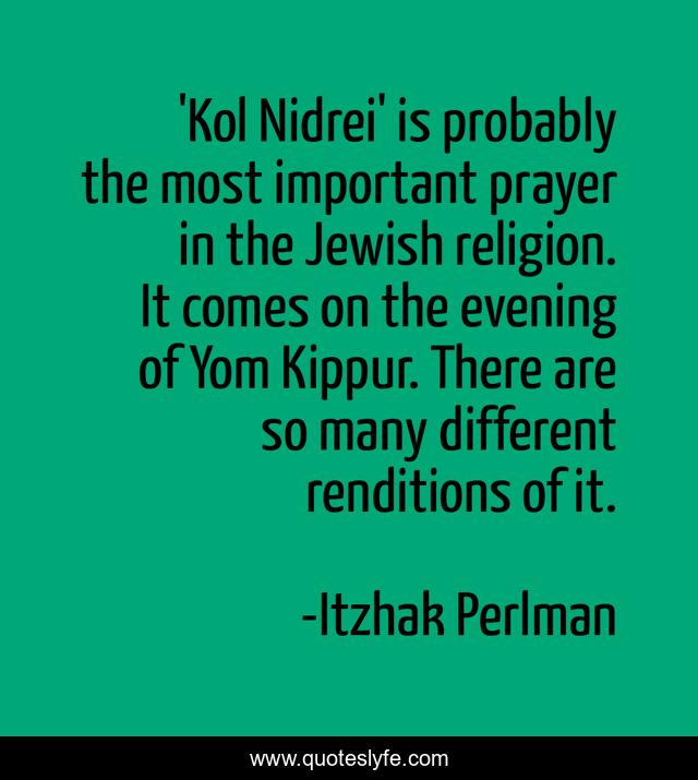This page presents the quote "'Kol Nidrei' is probably the most important prayer in the Jewish religion. It comes on the evening of Yom Kippur. There are so many different renditions of it.". Author of this quote is Itzhak Perlman. This quote is about evening, prayer,.