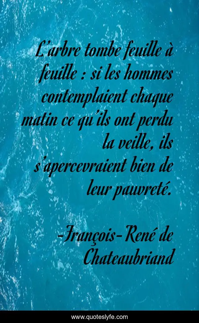 "François-René de Chateaubriand Quotes." Quoteslyfe.com, 2025. Tue. 09 Dec. 2025. <https://www.quoteslyfe.com/quote/L-arbre-tombe-feuille-feuille-si-les-12946>.