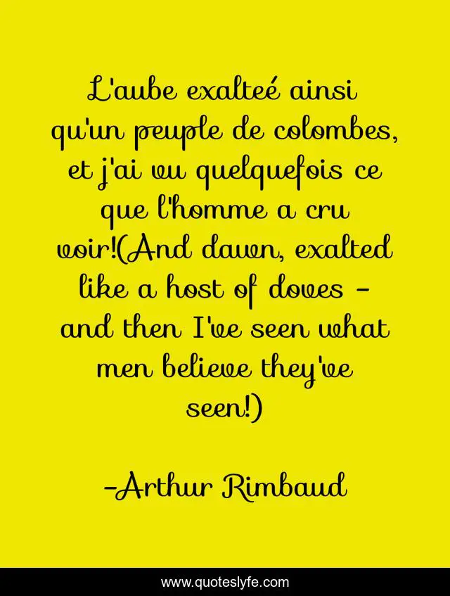 "Arthur Rimbaud Quotes." Quoteslyfe.com, 2025. Fri. 05 Dec. 2025. <https://www.quoteslyfe.com/quote/L-aube-exalte-ainsi-qu-un-peuple-25226>.