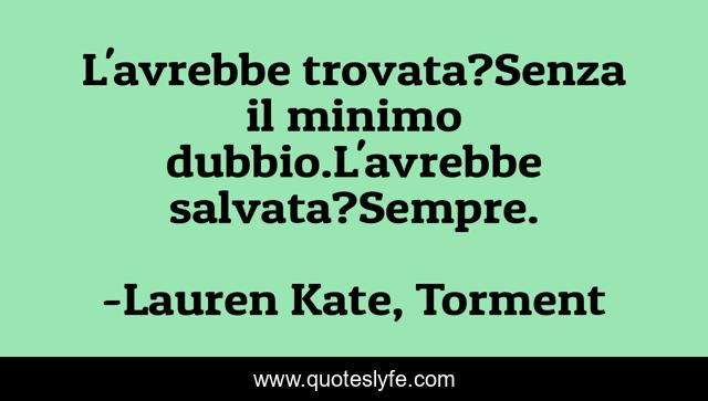 This page presents the quote "L'avrebbe trovata?Senza il minimo dubbio.L'avrebbe salvata?Sempre.". Author of this quote is Lauren Kate, Torment. This quote is about romance, angels, love, affection,.