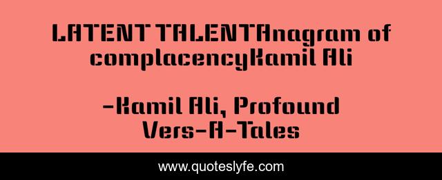 "Kamil Ali, Profound Vers-A-Tales Quotes." Quoteslyfe.com, 2025. Sun. 07 Dec. 2025. <https://www.quoteslyfe.com/quote/LATENT-TALENTAnagram-of-complacencyKamil-Ali-230294>.