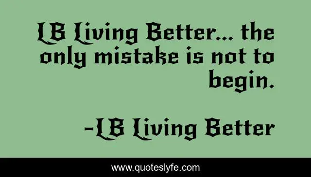 This page presents the quote "LB Living Better... the only mistake is not to begin.". Author of this quote is LB Living Better. This quote is about confidence, productive, positive, motivational, optimistic, inspirational, fun, enthusiasm,.