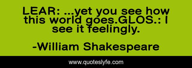 This page presents the quote "LEAR: ...yet you see how this world goes.GLOS.: I see it feelingly.". Author of this quote is William Shakespeare. This quote is about blindness, empathy, king-lear, truth,.
