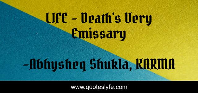 "Abhysheq Shukla, KARMA Quotes." Quoteslyfe.com, 2025. Tue. 09 Dec. 2025. <https://www.quoteslyfe.com/quote/LIFE-Death-s-Very-Emissary-17435>.