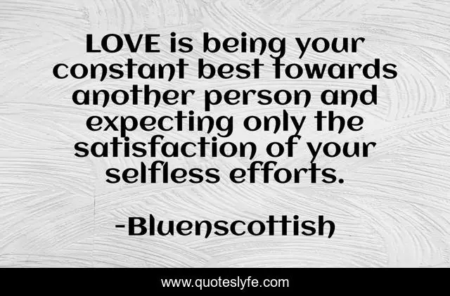 This page presents the quote "LOVE is being your constant best towards another person and expecting only the satisfaction of your selfless efforts.". Author of this quote is Bluenscottish. This quote is about bluenscottish, love-and-sayings,.