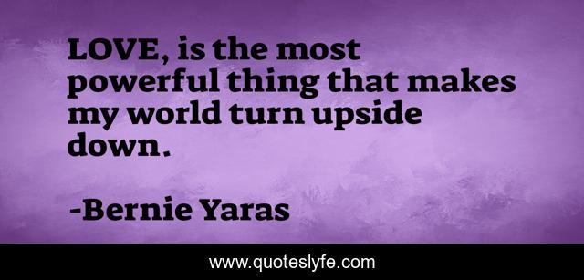 This page presents the quote "LOVE, is the most powerful thing that makes my world turn upside down.". Author of this quote is Bernie Yaras. This quote is about complicated-relationship, love, life, hurt, single, life-lessons, affection, inlove,.