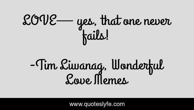 "Tim Liwanag, Wonderful Love Memes Quotes." Quoteslyfe.com, 2025. Sat. 06 Dec. 2025. <https://www.quoteslyfe.com/quote/LOVE-yes-that-one-never-fails-49536>.