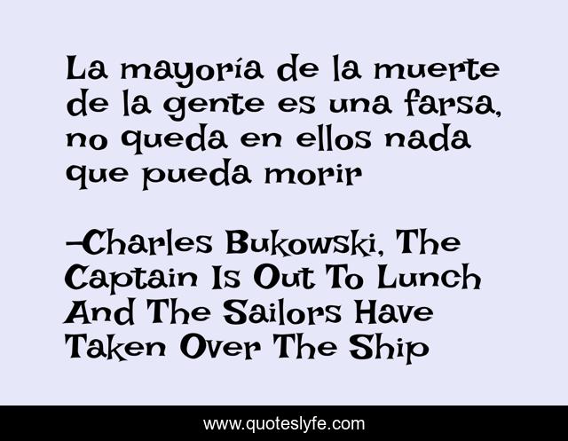 "Charles Bukowski, The Captain Is Out To Lunch And The Sailors Have Taken Over The Ship Quotes." Quoteslyfe.com, 2025. Mon. 08 Dec. 2025. <https://www.quoteslyfe.com/quote/La-mayor-a-de-la-muerte-de-21526>.