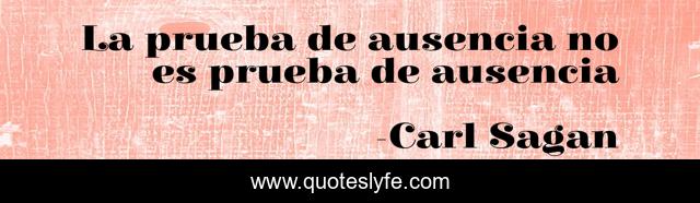 This page presents the quote "La prueba de ausencia no es prueba de ausencia". Author of this quote is Carl Sagan. .