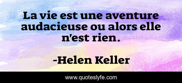 "Helen Keller Quotes." Quoteslyfe.com, 2025. Mon. 08 Dec. 2025. <https://www.quoteslyfe.com/quote/La-vie-est-une-aventure-audacieuse-ou-28544>.
