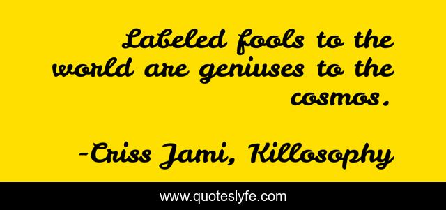"Criss Jami, Killosophy Quotes." Quoteslyfe.com, 2025. Fri. 05 Dec. 2025. <https://www.quoteslyfe.com/quote/Labeled-fools-to-the-world-are-geniuses-89223>.
