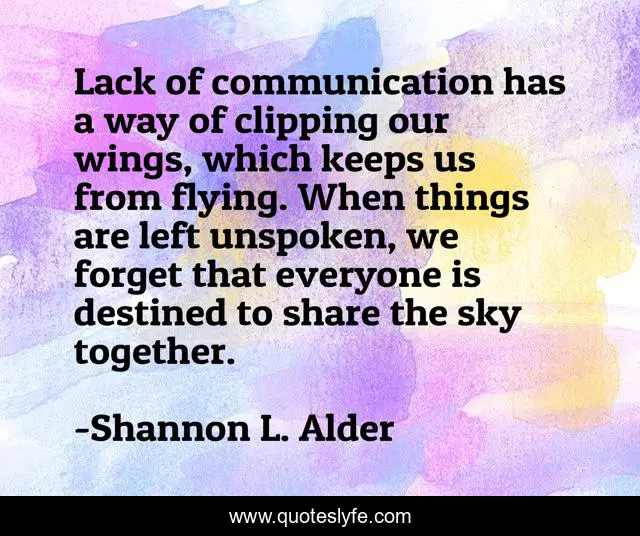 "Shannon L. Alder Quotes." Quoteslyfe.com, 2025. Fri. 05 Dec. 2025. <https://www.quoteslyfe.com/quote/Lack-of-communication-has-a-way-of-185516>.
