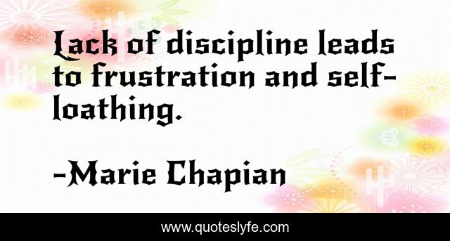 This page presents the quote "Lack of discipline leads to frustration and self-loathing.". Author of this quote is Marie Chapian. This quote is about control, self,.