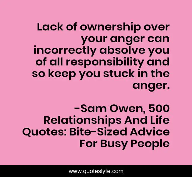 "Sam Owen, 500 Relationships And Life Quotes: Bite-Sized Advice For Busy People Quotes." Quoteslyfe.com, 2025. Sat. 06 Dec. 2025. <https://www.quoteslyfe.com/quote/Lack-of-ownership-over-your-anger-can-161424>.