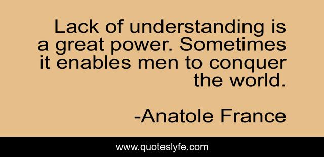 This page presents the quote "Lack of understanding is a great power. Sometimes it enables men to conquer the world.". Author of this quote is Anatole France. .
