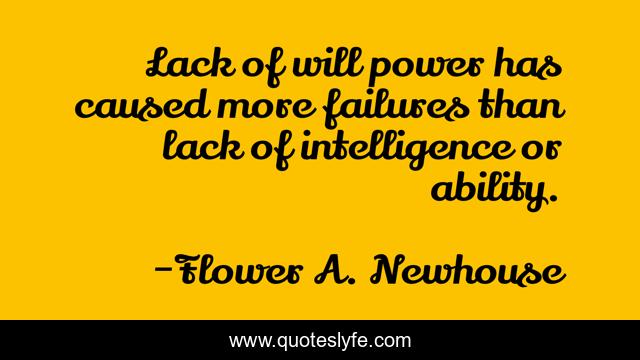This page presents the quote "Lack of will power has caused more failures than lack of intelligence or ability.". Author of this quote is Flower A. Newhouse. This quote is about failures, mistakes,.