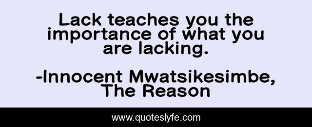 This page presents the quote "Lack teaches you the importance of what you are lacking.". Author of this quote is Innocent Mwatsikesimbe, The Reason. This quote is about poor, life, wealth, success, money, lack, self-improvement, rich, self-help,.