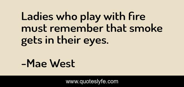 This page presents the quote "Ladies who play with fire must remember that smoke gets in their eyes.". Author of this quote is Mae West. This quote is about justice, women,.