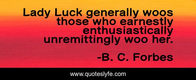 This page presents the quote "Lady Luck generally woos those who earnestly enthusiastically unremittingly woo her.". Author of this quote is B. C. Forbes. This quote is about recognize, maximize,.