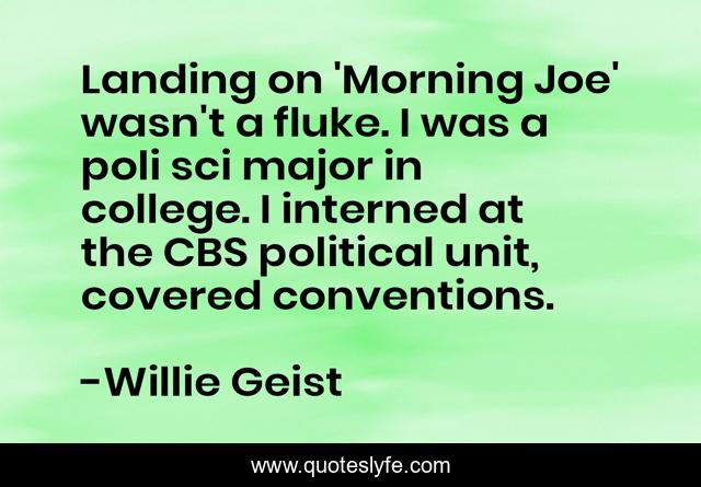 This page presents the quote "Landing on 'Morning Joe' wasn't a fluke. I was a poli sci major in college. I interned at the CBS political unit, covered conventions.". Author of this quote is Willie Geist. This quote is about college, political, landing,.