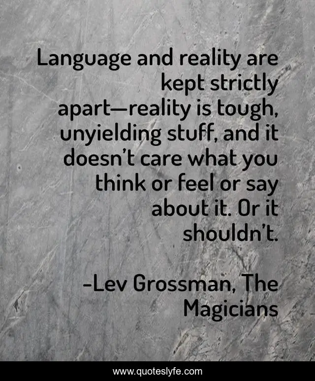 "Lev Grossman, The Magicians Quotes." Quoteslyfe.com, 2025. Fri. 05 Dec. 2025. <https://www.quoteslyfe.com/quote/Language-and-reality-are-kept-strictly-apart-93674>.