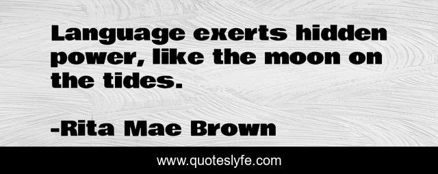 This page presents the quote "Language exerts hidden power, like the moon on the tides.". Author of this quote is Rita Mae Brown. This quote is about language, power,.