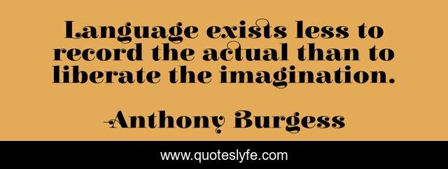 This page presents the quote "Language exists less to record the actual than to liberate the imagination.". Author of this quote is Anthony Burgess. This quote is about j-g-ballard, literature, burgess, science-fiction, writing,.