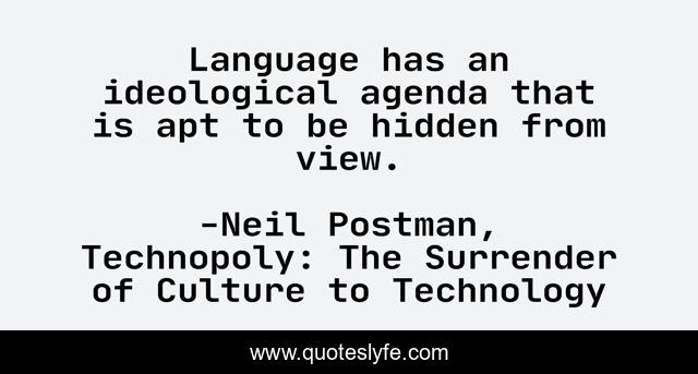 "Neil Postman, Technopoly: The Surrender of Culture to Technology Quotes." Quoteslyfe.com, 2025. Mon. 08 Dec. 2025. <https://www.quoteslyfe.com/quote/Language-has-an-ideological-agenda-that-is-159168>.